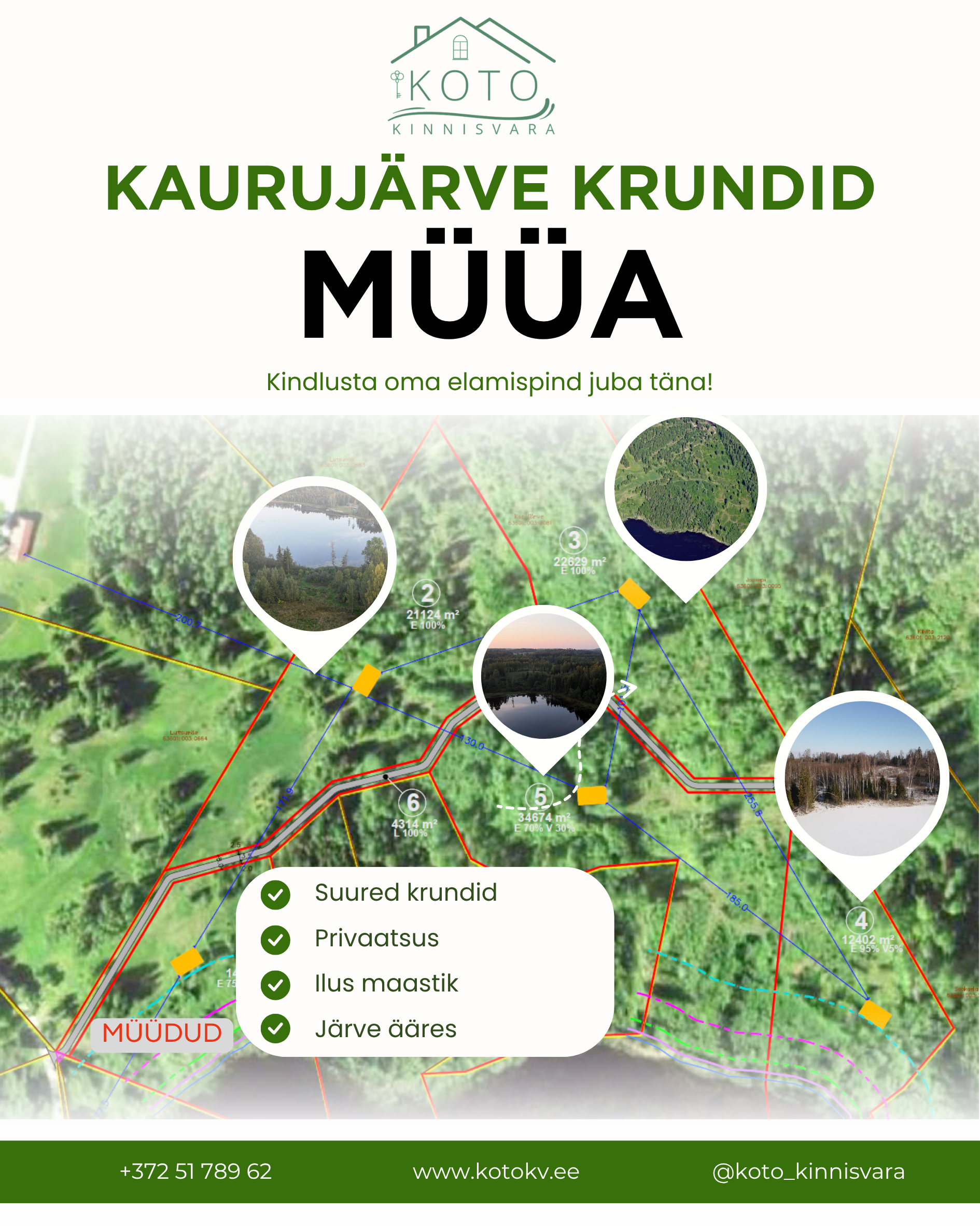 See on ainulaadne koht, kus rajada suvila, maakodu, majutus või lihtsalt nautida oma enda vaikset paika looduse rüpes. Projekteerimistingimused saab uurida omavalitsuselt. Krundini viiv tee antakse tulevikus vallale üle ja tee ehitus algab juuni 2025. Tee laius umbes 5m.